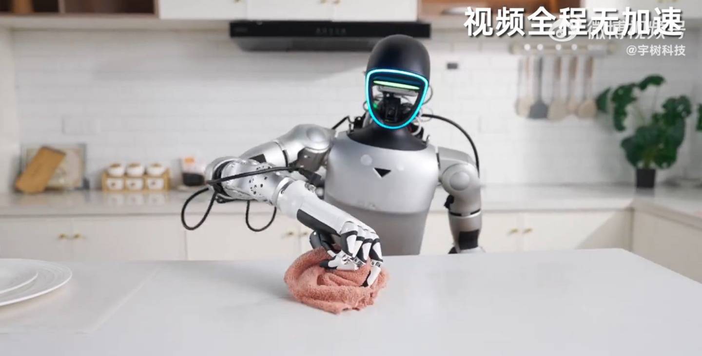 机器人可通过视频实时学习人类全身动作,官方演示了洗碗、使用扫地机器人清洁、整理衣物、端水等家务活动。